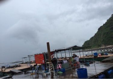 需先到小惠老码头,然后有船过来接送,船费来回60元。 来到小桂伟仔鱼排钓鱼30-40元/天。 这里快餐20元一份,住宿100元一天。