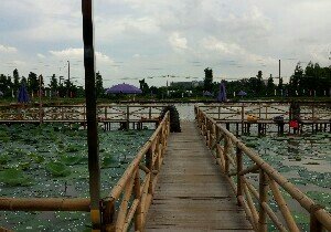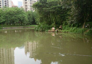 这里是佛山市亚洲艺术公园 里面有几个湖 公园在其中的一个湖的支叉处划分了一段地方给市民钓鱼 直接做131路公交车到亚洲艺术公园下车既可