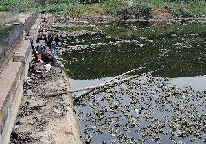 水质太差,有人在这段钓鲶鱼。