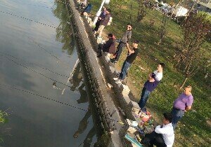 钓鱼人挺多,活水河。